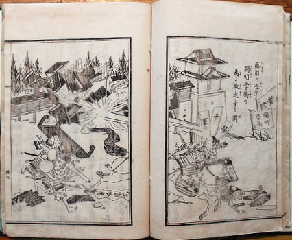 Nishimura was an imperialist and an anti-foreigner: they were all to be expelled. Kaika no Moto translates as the Book of Civilisation; it's part one but there was never a part two. A quick glance at the first picture might tell you where he stands but there's much going on in those illustrations I don't understand. A literal translation is of little help when you don't understand what it means. Why is that castle of books being blown up? I have no idea.