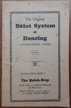 BOLOT, Prof. [John]. The Original Bolot System of Dancing Sydney, Bolot [193-?]. 19x14cm publisher's printed wrapper; 76pp, photo illustrations and step diagrams. A touch used and browned. Au$165