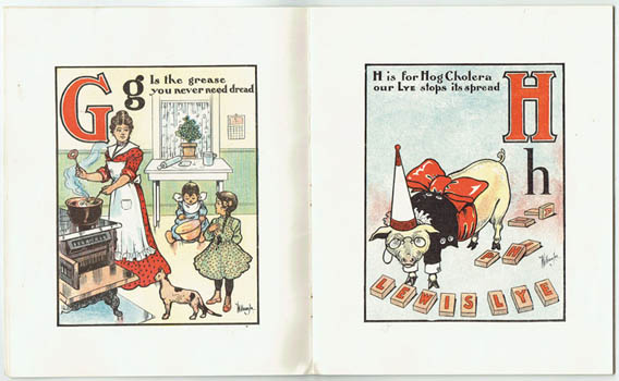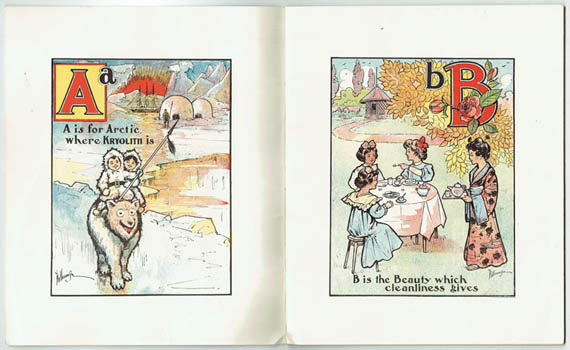 A charming ABC extolling Kryolith - made into lye, caustic soda, sold as Lewis Lye - and the multitude of ways it makes life easier, healthier, more beautiful. Cryolite seems to have come from one source, a deposit on the Greenland coast which, once that load was turned into lye or used in the production of aluminium, pretty much vanished from our lives.