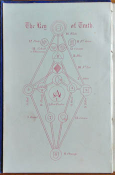 The diagram (the Key of Truth) is purposely on paper that can be coloured and the colours are given; likewise the tabulations can be removed, mounted in order, and coloured. Colour and, to a lesser extent, geometry and numbers play a large part in all this. All the laws of nature and all human ideas are classified so that a 'base may be formed for the expansion of thought [and] a rule laid down for the mathematical measurement of moral sentiments'.