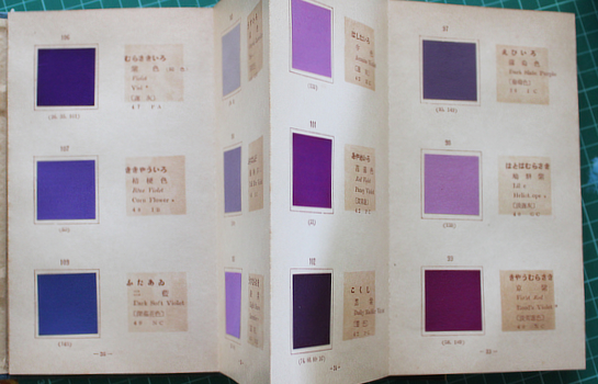 Wada Sanzo. 色名総鑑 [Shikimei Sokan]. Tokyo, Shunjusha 1931 (Showa 6). 20x12cm publisher's cloth case with title label with 160 mounted colour samples on 56 accordian folding card leaves; and wrappered book; 178pp and some tables (two folding). Browning and the usual offsetting of the card; still a good enough copy in the original printed card outer folding case (this browned and dusty). Colour samples named in Japanese, English and occasionally French or German; two of the tables are multi language lists of colour names. Au$600