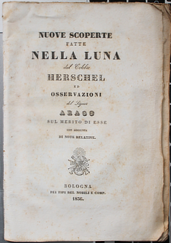 These Bologna publishers are thorough spoil sports and have based this around the expose address by Arago - if there was such a thing. On page 25 we read about the French versions (a rough translation): To make this deceptive mockery more complete, it ... now runs through the streets always with the name of the illustrious Herschel on the front. By page 25 the reader has presumably forgotten our title page.