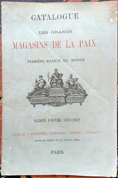 Catalogue - Fashion &c.. Grands Magasins de la Paix. Paris. Catalogue des Grands Magasins de la Paix. Premier Maison du Monde. Saison d'Hiver 1871-1872. Paris, the company 1871. Large octavo printed wrapper (a bit chipped); 64pp, woodcut illustrations. Some minor signs of use. Au$200