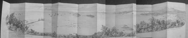 Kimura Tokaturo. 冠帽圖會 [Kanbo Enkai]. Tokyo, Yoshikawa 1899. folio (370x260mm) printed boards (marked & smudged); accordian folding giving eight double page openings; the first text, the rest coloured woodcuts ranging from two to seven illustrations per opening. One fold separated. Au$300