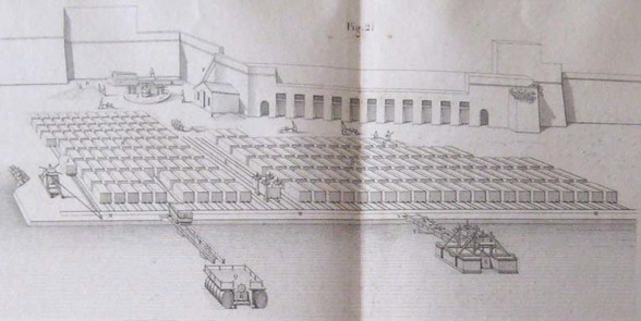 It has been argued that van den Bosch's Benevolent Society and this first paupers' agricultural colony at Frederiksoord - begun in 1818 - are less an experiment in utopian idealism than the model for the modern prison farm. Certainly from the two plates (one is a plan and view of a colonist's house, the other a birds-eye view of part of the colony) it looks, from this distance, less than utopian. Bleak is the word I'd use. Still, being a Lowlands pauper just after the Napoleonic wars can't have been much of a picnic.