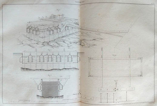 POIREL, M. [Leopold-Victor]. Memoire sur les Travaux a la Mer, comprenant l'historique des ouvrages executes au Port d'Alger ... Paris, Carilian-Goeury & Dalmont 1841. Two volumes quarto publisher's printed wrappers; I; text; xii,152pp, II; plates: [4]pp and 18 double page engraved plates. General foxing of the text, much less so of the plates; spines chipped and front wrappers detaching but a respectable pair in a modern cloth drop-back box. Au$750