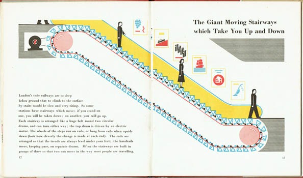 >Isotype. NEURATH, Marie. Railways Under London. London, Max Parrish [1948]. Large octavo publisher's cloth and dustwrapper (this showing signs of use with a couple of small chips and a couple of closed tears); 32pp, colour illustrations throughout. A repaired closed tear in the half title - the left hand side of the double page title; a read, still rather good copy. Au$300 What is it about the London underground that made for such good modernist graphic art? The subways, the metros, the u-bahns, these all have their moments but none of them so consistently inspired such clever design. Marie Neurath, one third, with husband Otto and Gerd Artnz, of the team that invented and developed isotype - an attempt at a universal graphic language - did quite a few of these isotype books for kids after the war but this one is by far the best.