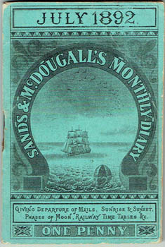 ![]() Sands & McDougall's Monthly Diary July 1892. [Melbourne 1892]. 105x70mm publisher's illustrated wrapper; 120pp including 32 diary pages - these used to memorialise a trip from Melbourne to England from March to September 1893; a few illustrated adverts; departures of the mails, railway timetables etc. Au$150 The neat, perfunctory diary notes record a trip so arid, so dull, that I hope it is all euphemistic code. These little books are near guaranteed not to survive but I'm astonished to find - rather, to not find any copies listed anywhere. Can this be right?