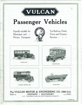 ![]() Catalogue - Buses and Trucks. Vulcan Motor & Engineering Co. Crossens. Vulcan Passenger Vehicles ... The Company, October 1921. Quarto, 8pp, stapled; numerous photo illustrations. A bit rumpled and used. Price slips pasted in. Au$50 Charabancs and buses and some vans and lorries on the last page.This is pretty close to marking Vulcan's entry into bus making.