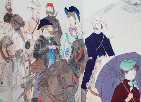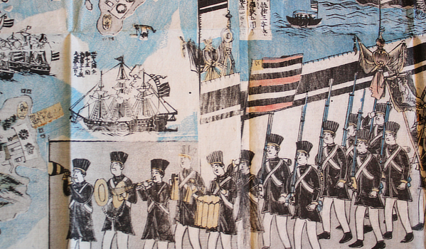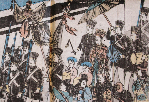 There are other kawaraban with this title and a couple closely resemble this in parts. One has the first few musicians in the American procession but not the rest and not the majestic figure of, I presume, his royal highness Adams. The Sanada Treasures Museum has a copy of this and Brown University has a copy but not coloured. That's all I found.
