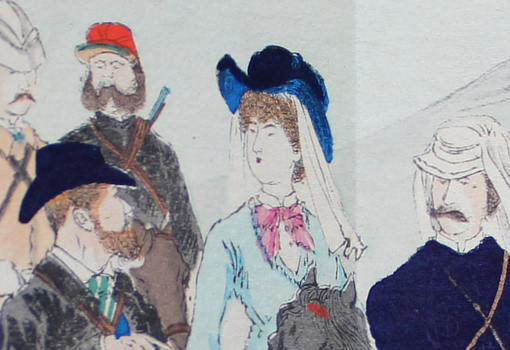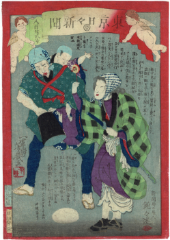 Utagawa Yoshiku. 東京日々新聞 822号 [Tokyo Nichinichi Shimbun no. 822]. Tokyo, Gusokuya 1874 (Meiji 7). 35x24 colour woodcut. A nice copy. Au$400