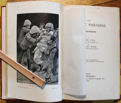 PUGH, Edwin & Charles Gleig. The Rogues' Paradise. An extravaganza. London, Bowden 1898. Octavo publisher's illustrated dark red cloth blocked in black and white; frontispiece by Stanley L. Wood. A pleasing copy. Au$225