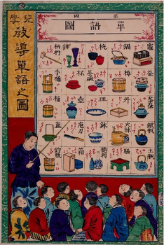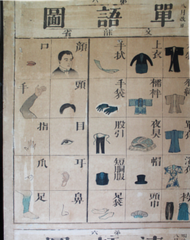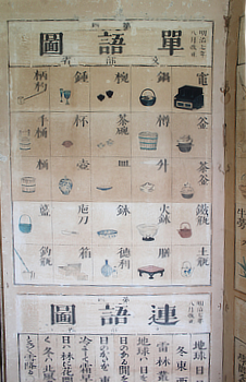 The lower elementary school curriculum established by the Normal School stipulated that students should first study vocabulary using wall charts such as word charts and collocation charts, as a prelude to learning materials like the Elementary School Reader ...