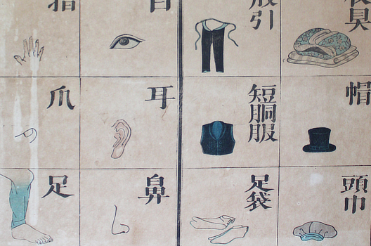 The eight word charts published in 1873 were created by the Normal School editorial office, a liberal faction that actively sought to absorb Western civilization. They incorporated Pestalozzi's educational philosophy and focused on illustrations to allow children to understand intuitively through their own eyes. The first and second word charts were designed to teach historical kana spelling, while the third through eighth word charts were written in kanji or katakana, allowing children to learn the properties and uses of familiar objects through a question-and-answer format.
