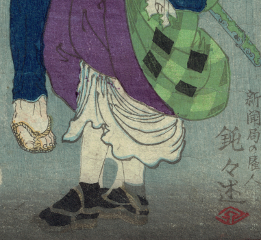 I think this a lithographic printing of the last version but it's sometimes hard to tell the difference between a poor lithograph and a poor woodcut. Certainly the paper looks like wood pulp. That blank panel, bottom right, has Yoshidaya's name in it on other printings.