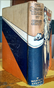 OHNET, Georges. [Georges Henot]. The Poison Dealer. London, Werner Laurie [1906]. Octavo publisher's illustrated fawn cloth printed in orange, blue and white. The tan cloth darkened; signs of use, some foxing at ends and edges; not bad for a book guaranteed not to wear well. Au$300